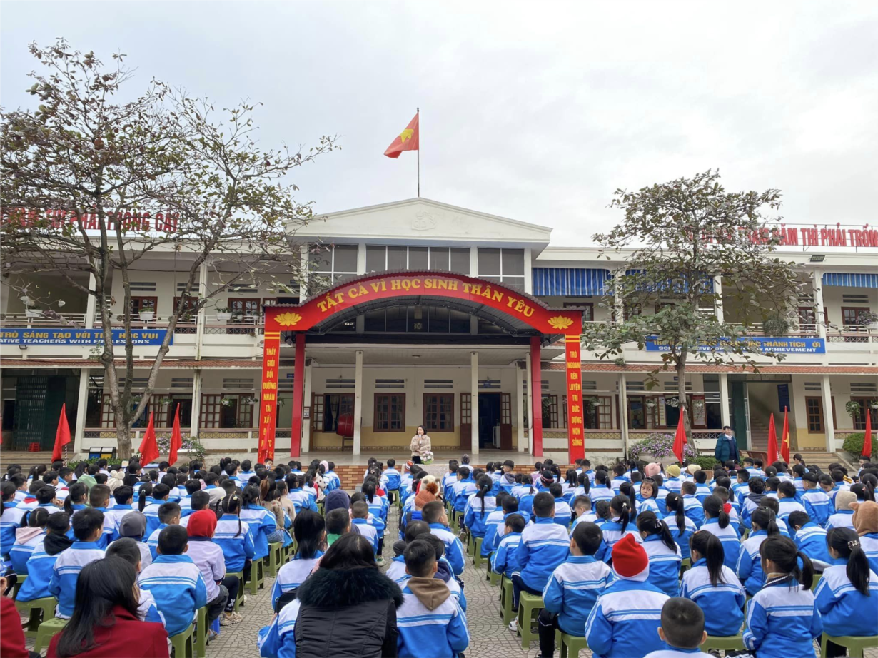Trong buổi lễ, các em học sinh đã thực hiện nghi lễ chào cờ, nghe cô Tổng phụ trách nhận xét, tổng kết công tác tháng 11 và phát động phong trào thi đua tháng 12.